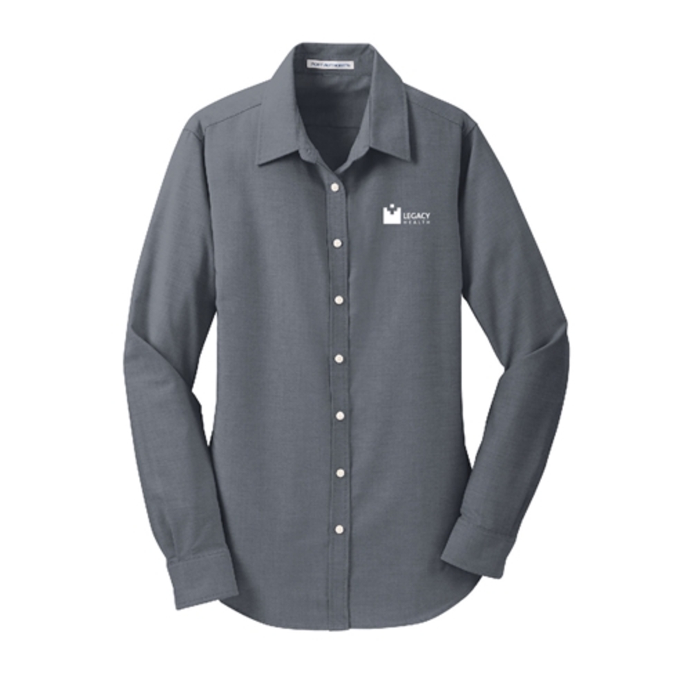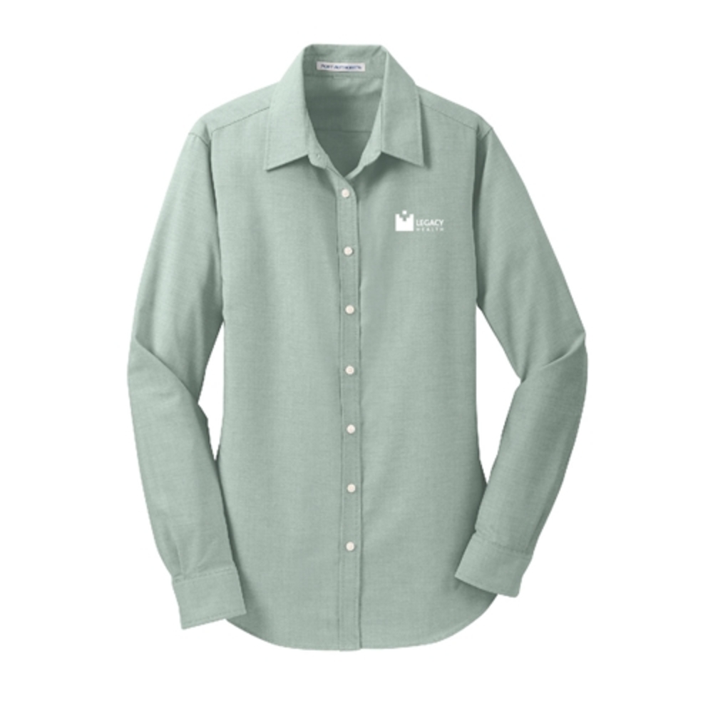 sku: LE267Look your best in a tried-and-true oxford that performs. Proven in independent lab tests to resist and release stains, our SuperPro Oxford has a soft hand and a wrinkle-free finish to keep you looking neat and professional all day long. 4.6-ounce, 60/40 cotton/poly Open collar Bust darts Back yoke with knife pleats Pearlized buttons Button-through sleeve plackets Two-button adjustable cuffs